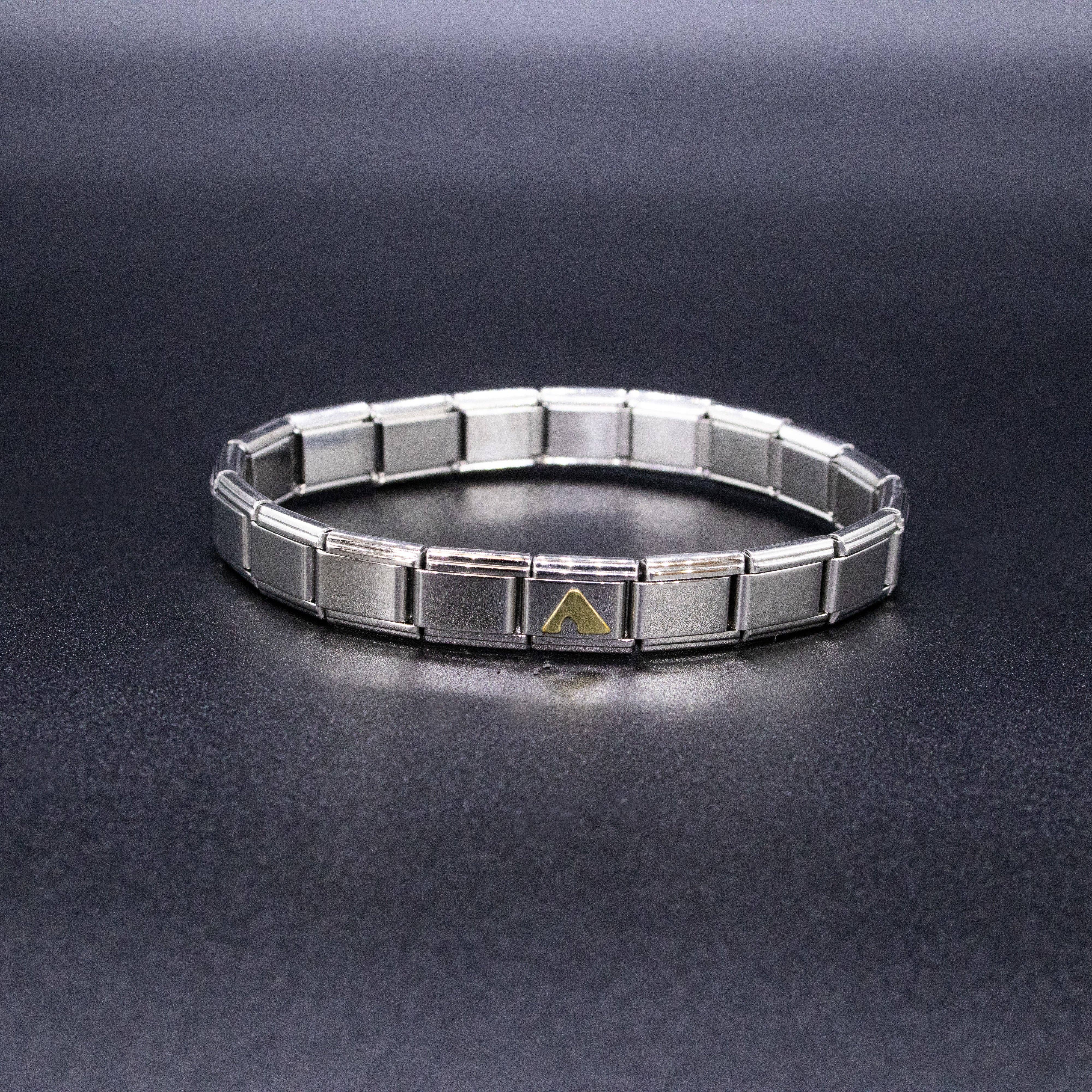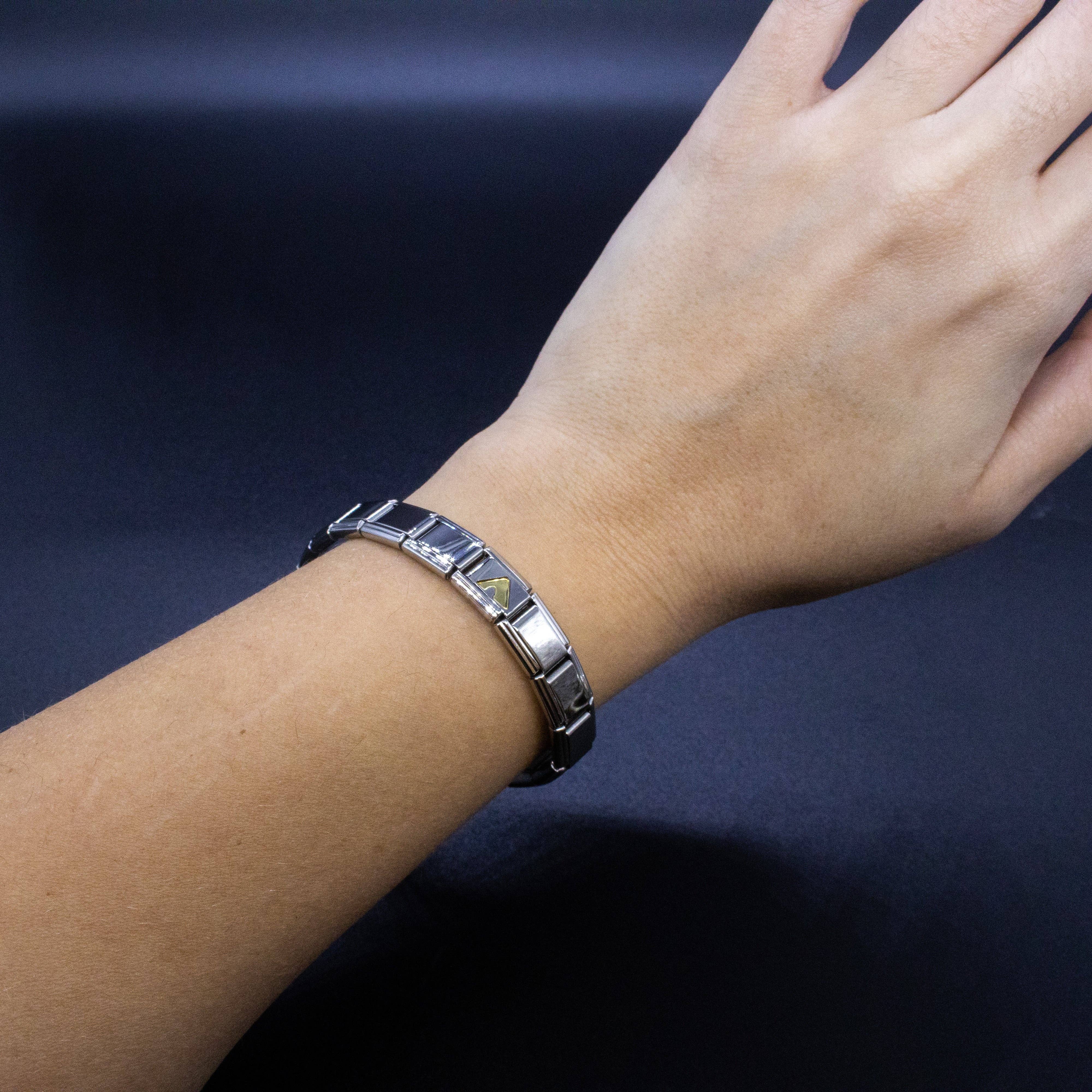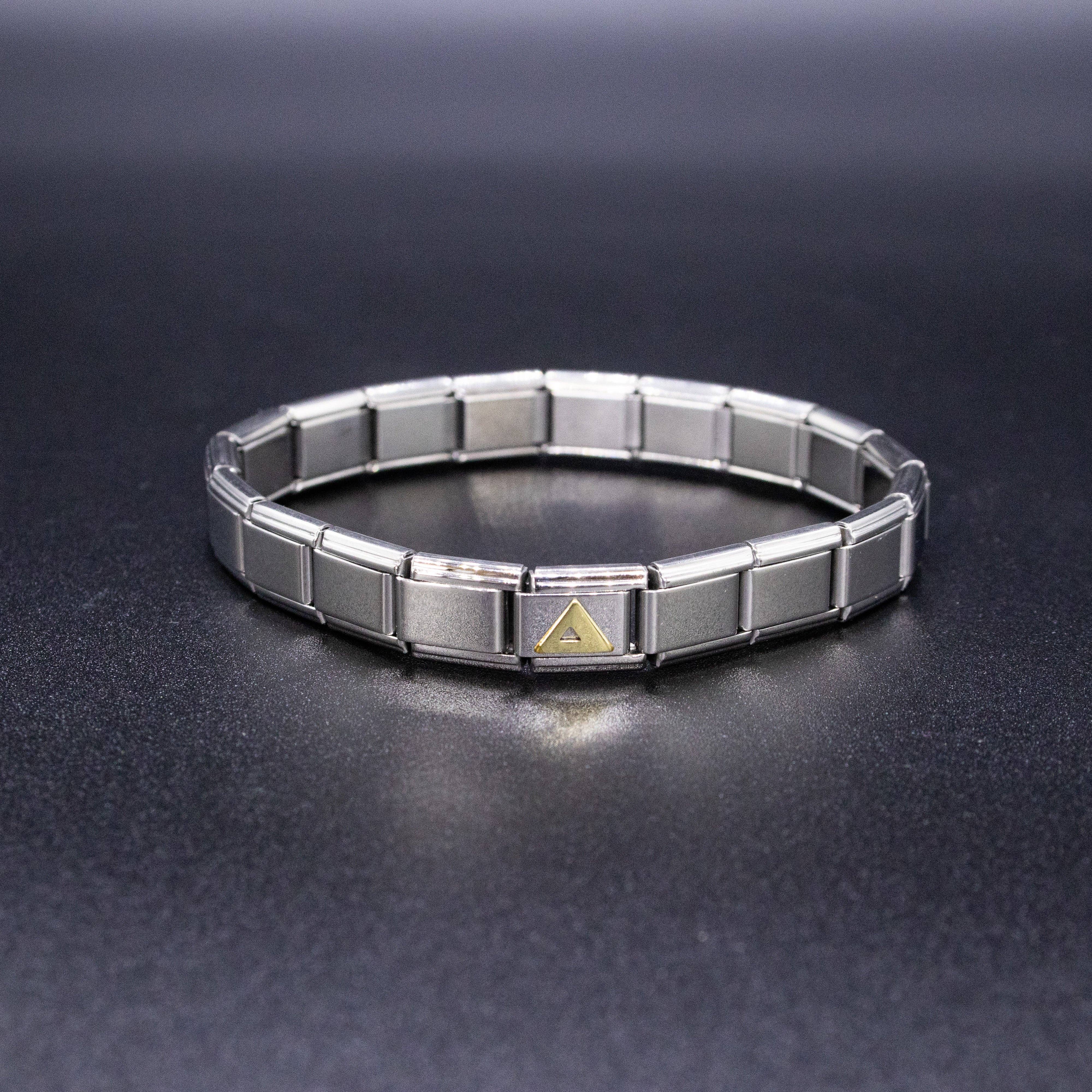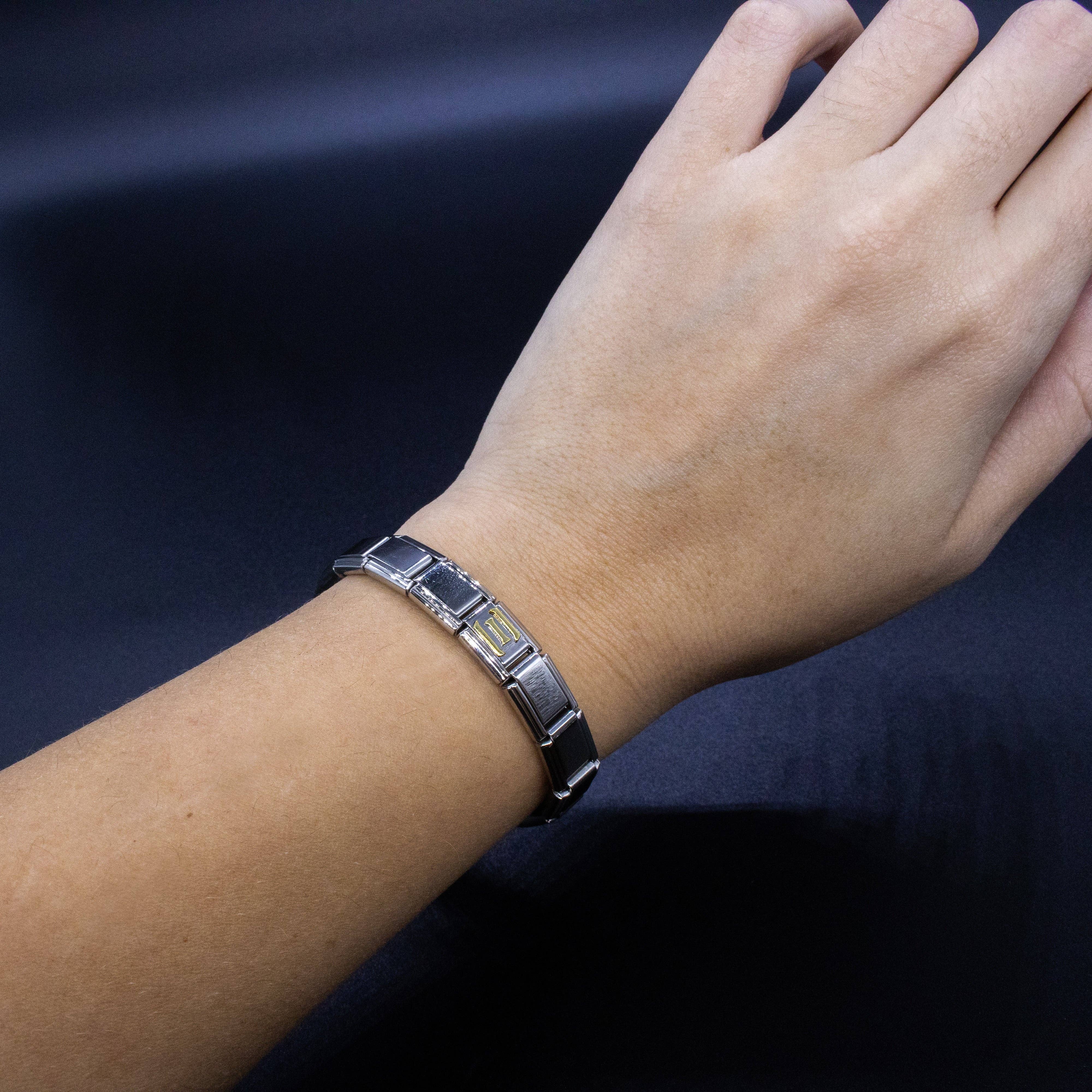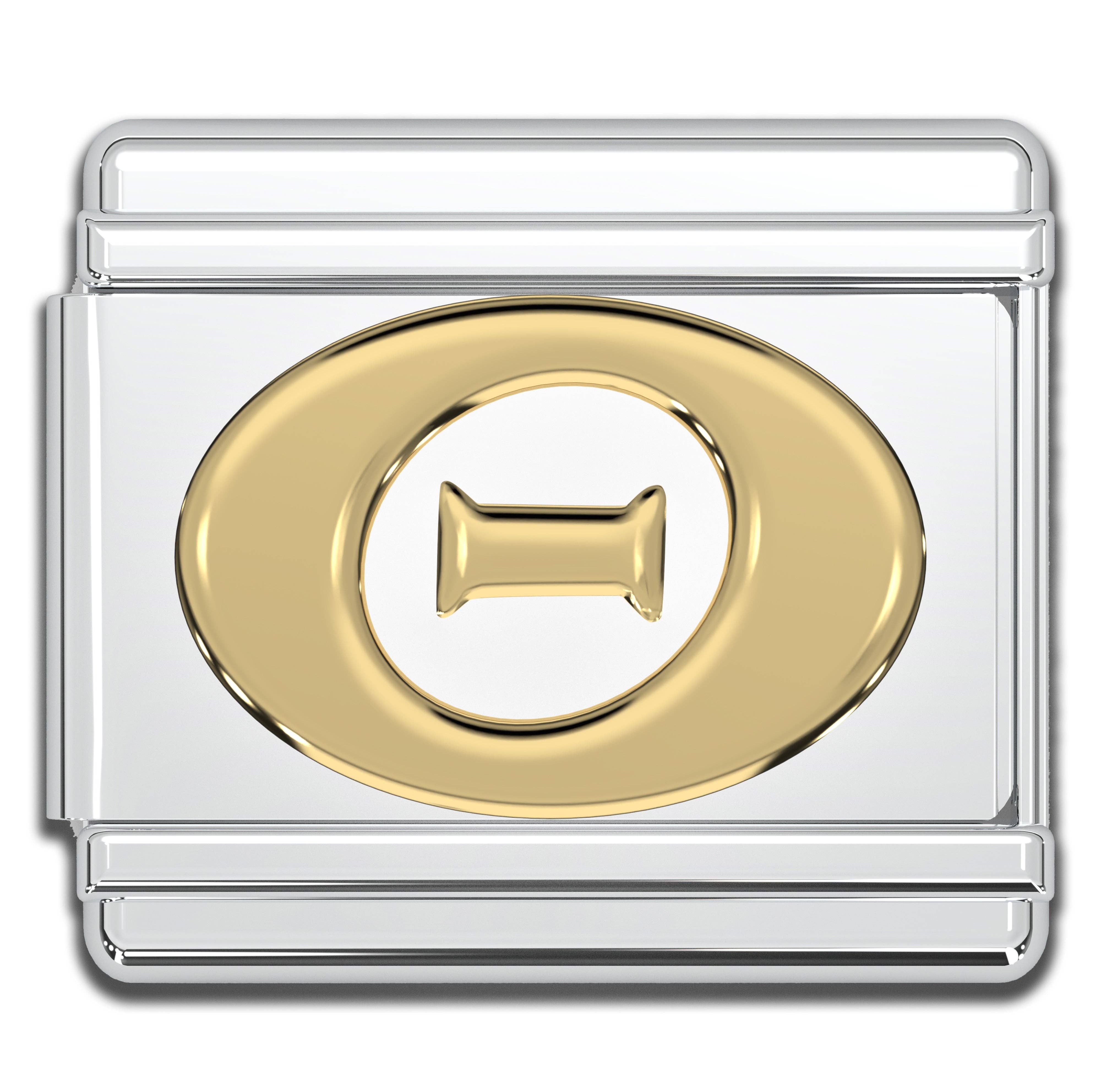 9mm Italian charms, compatible with any standard sized Italian square links bracelet * Dimensions: 9mm length x 10mm width x 2mm height * Stainless steel charms with a raised gold Greek alphabet letter design * Available letters: Gamma, Delta, Theta, Lambda, Xi, Pi, Sigma, Phi, Psi, Omega * Fraternity and sorority themed bracelet charms for teens and adults * Unisex Italian links for women and men