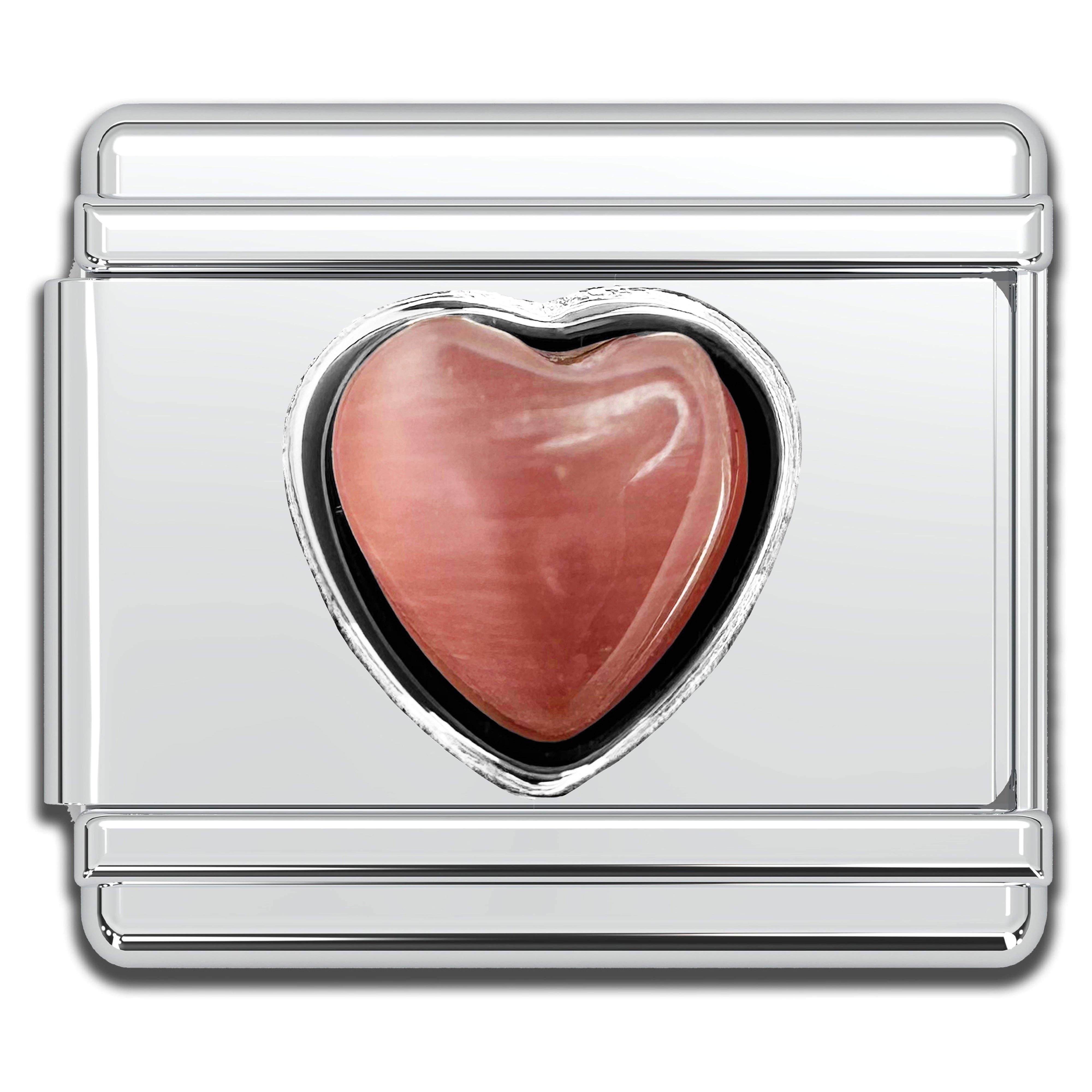 Italian Bracelet Charm - Semiprecious Stone Pink Cat's Eye Heart