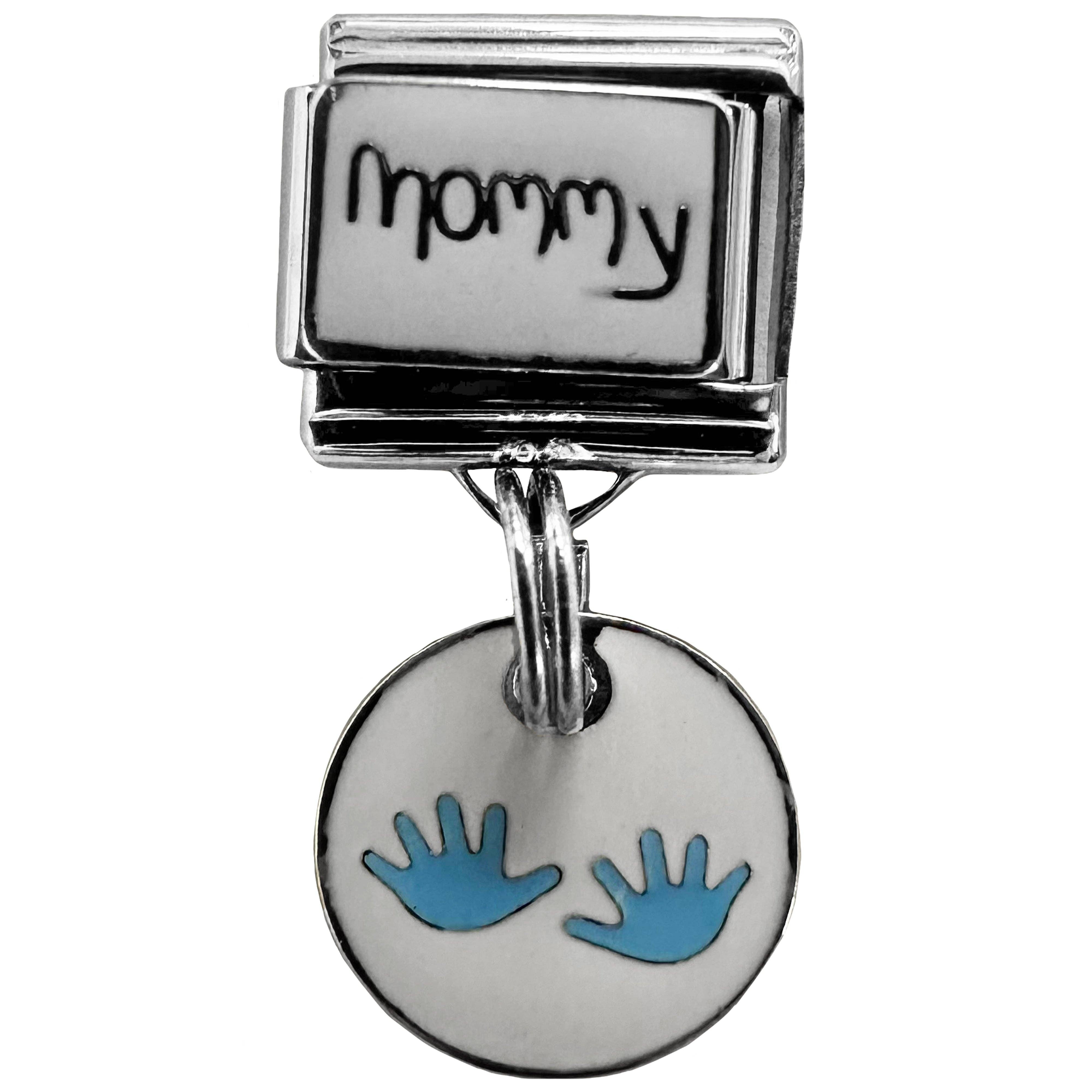 Italian Bracelet Dangle Charm - Blue Handprint Mommy Dangle