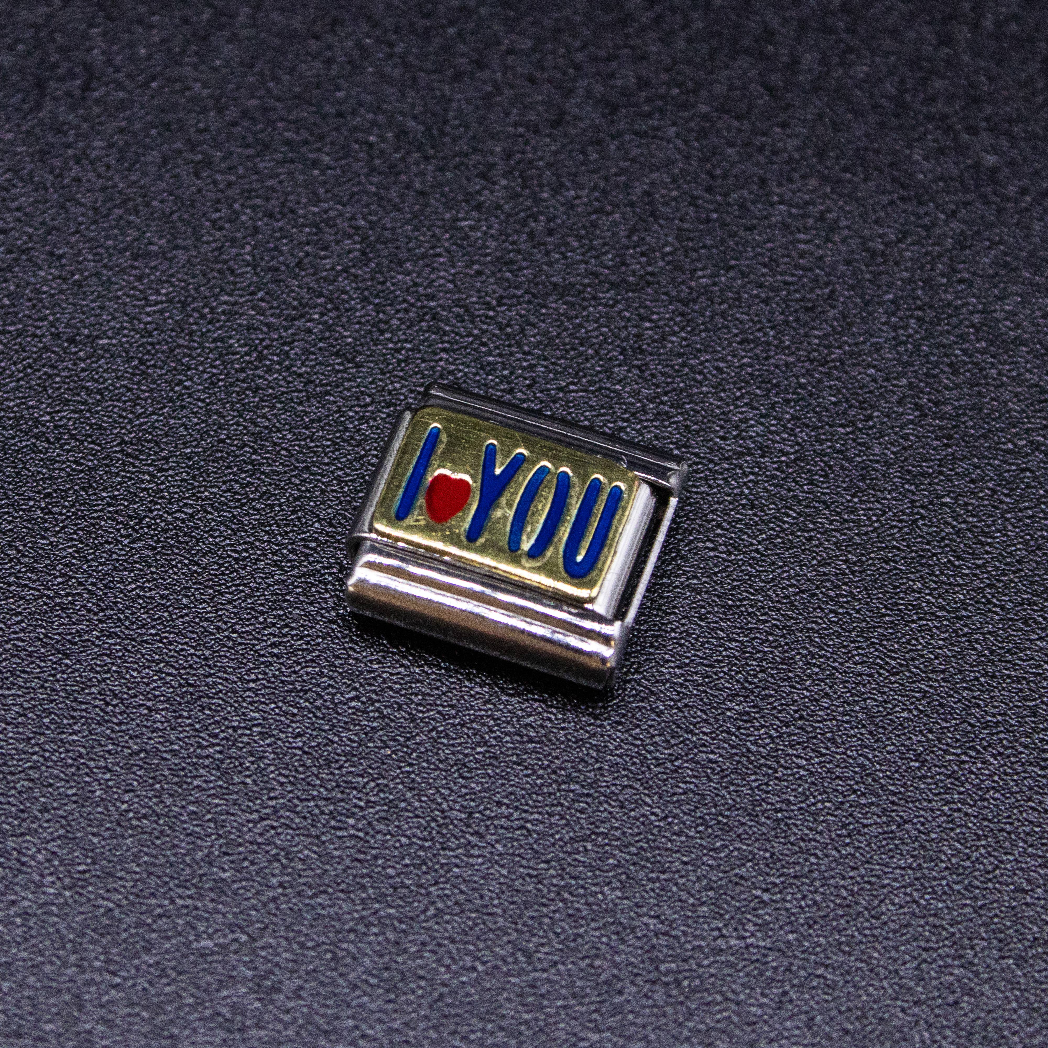 Italian Charm Bracelet Charms - I Love You Raised Gold Links