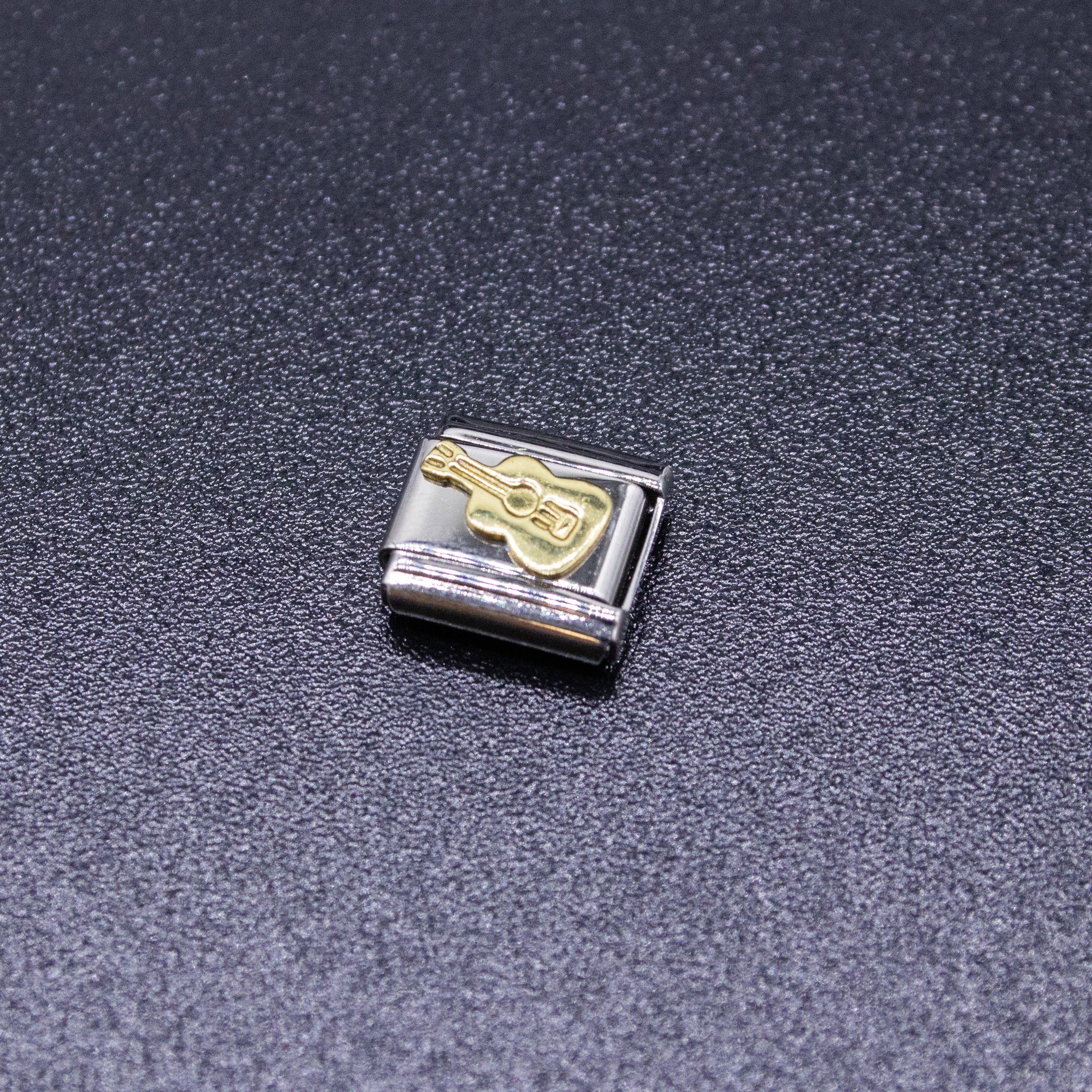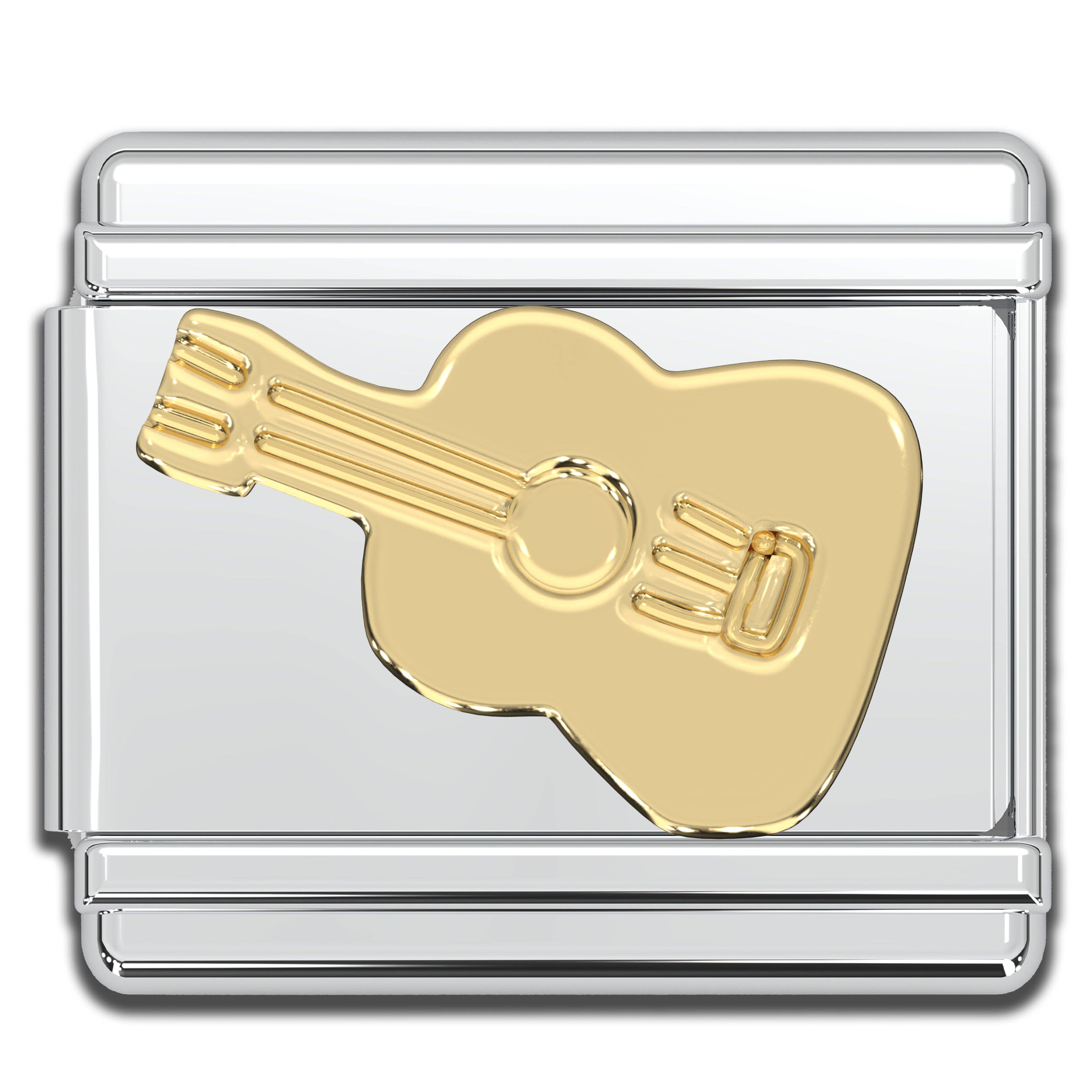 Italian Charm Bracelet Charms - Raised Gold Guitar