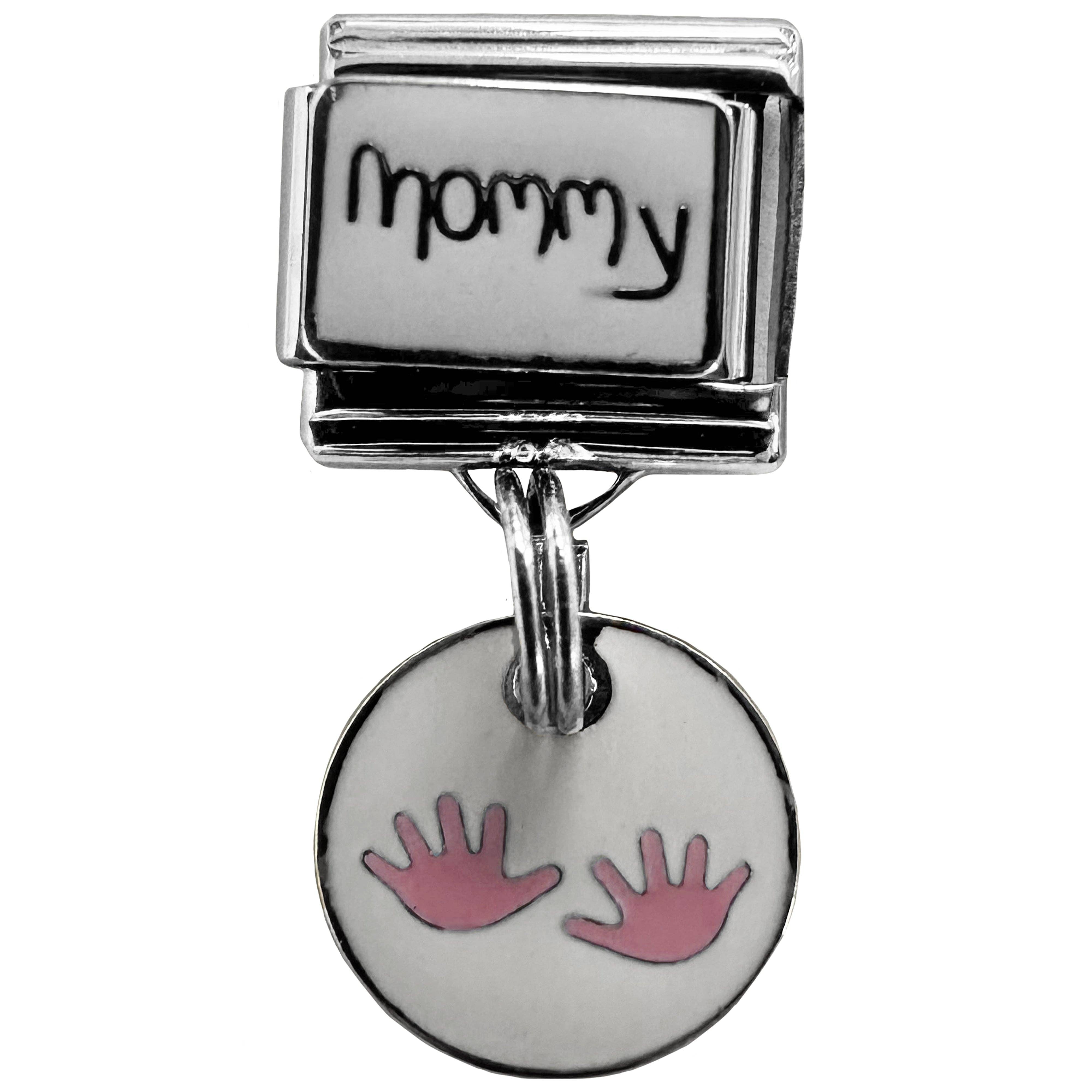 Italian Bracelet Dangle Charm - Pink Handprint Mommy Dangle