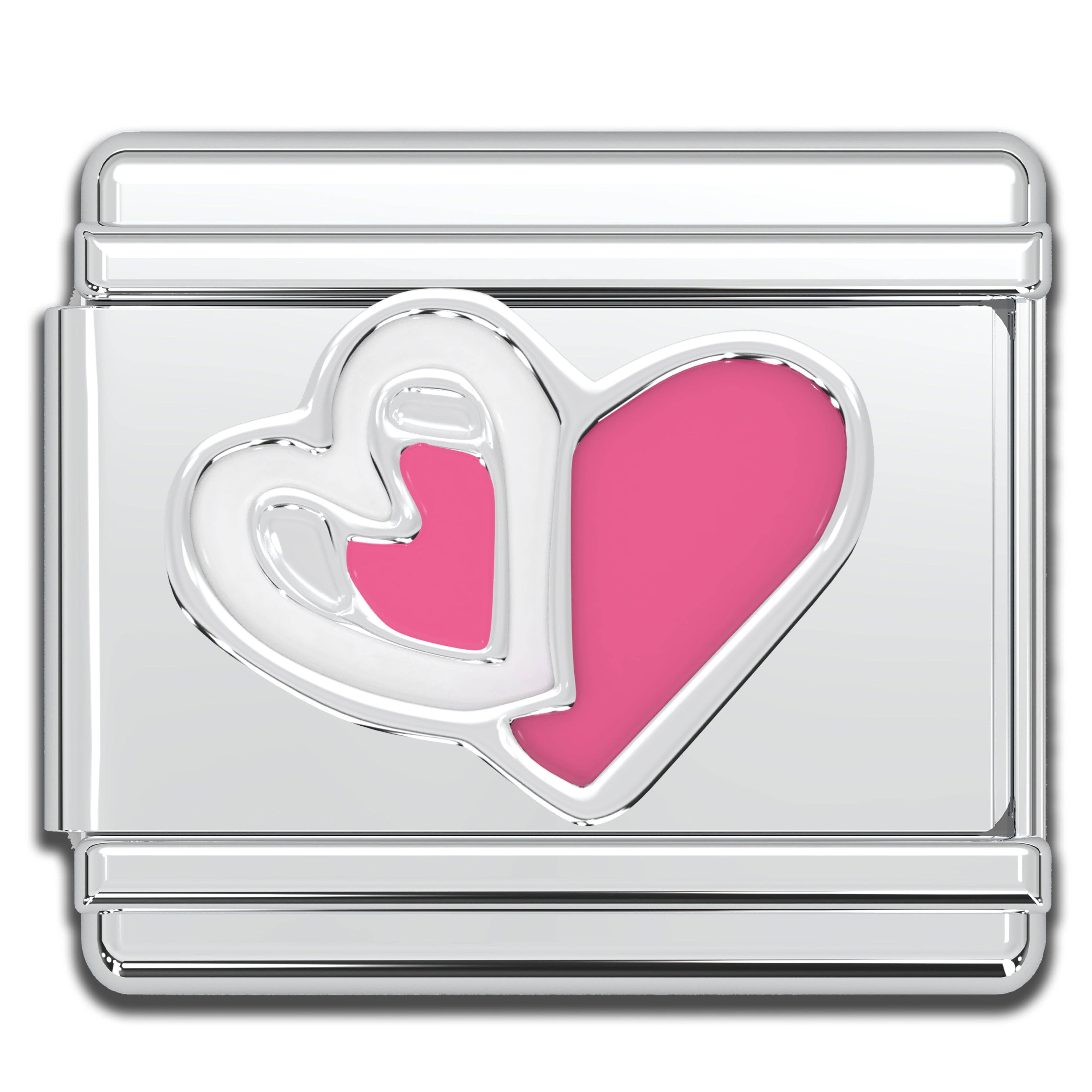 Italian Bracelet Charm - Pink & White Hearts