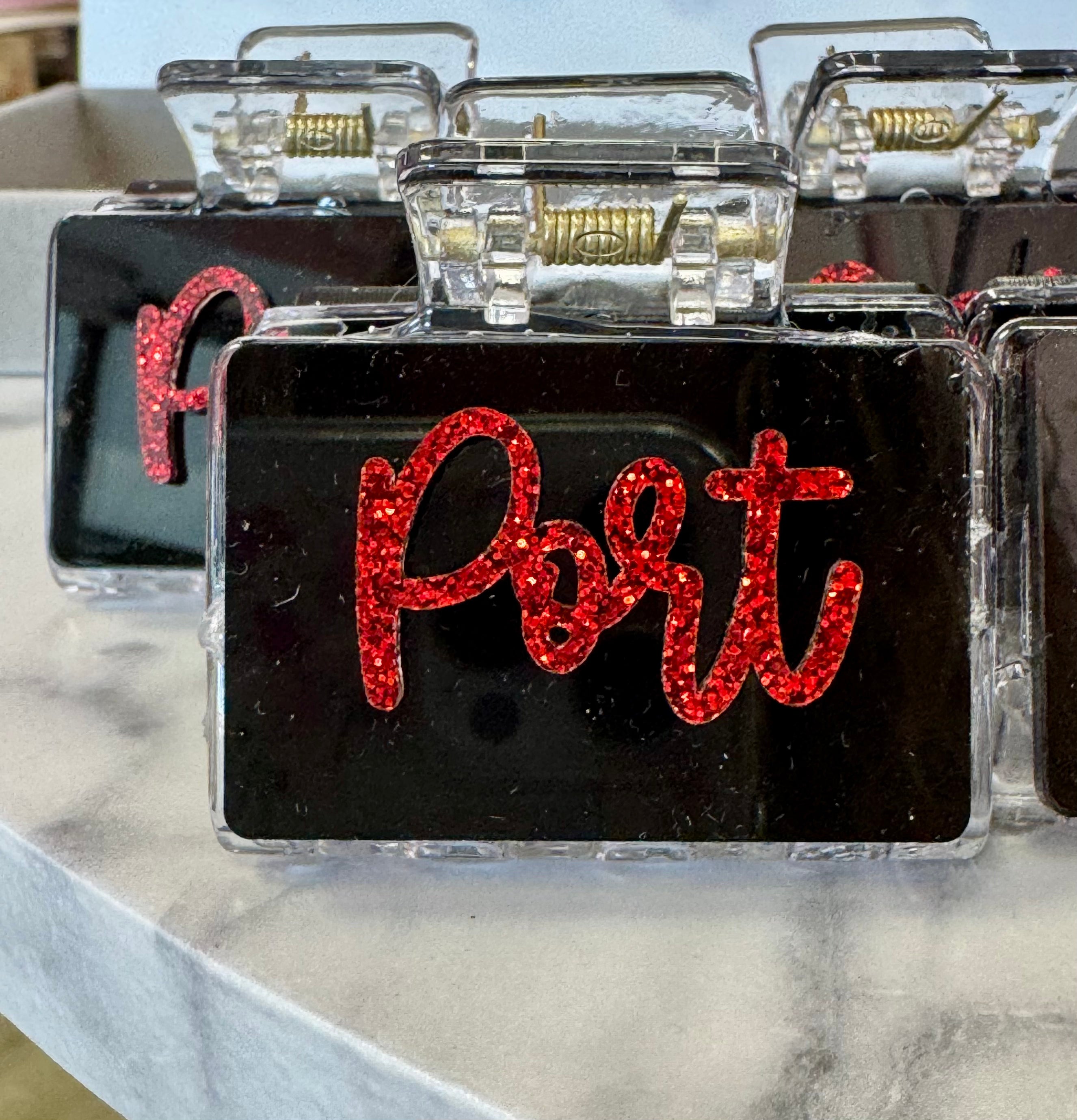 Black and Red Acrylic Small Hair Clip for Game Day. Port Pride.